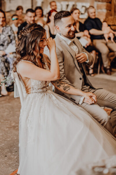 Wir möchten uns nochmals von ganzem Herzen für die tolle Traurede bedanken! Die Trauung war emotional, humorvoll und einfach wunderschön! Mit dem Thema der Rede hast du die besondere Location wunderbar aufgenommen und auf uns abgestimmt. Dass nicht nur wir als Brautpaar Mittelpunkt der Rede waren, sondern auch unsere Gäste mit eingebunden und unsere Trauzeugen als wichtige und bedeutsame Personen hervorgehoben wurden, hat uns besonders gut gefallen.